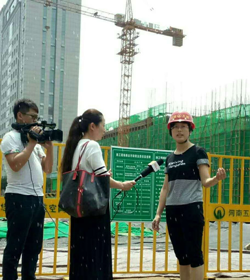 为鼓励先进,宣传示范企业,6月23日,信阳市大气办邀请信阳市电视台,就公司对扬尘治理采取的措施及成效经验等问题,在太古广场项目进行了专题采访,并在信阳市电视台进行了报道。公司副总工、工程部部长吴善艳接受了此次采访。
