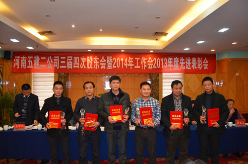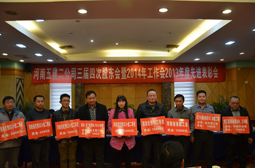 随后,财务总监郑慧和副总经理吴建功分别宣读了《关于对2013年度公司先进单位和个人进行表彰的决定》和对2013年度科技创新、工程质量和安全管理目标实现的奖励文件,对先进项目部(单位)、经济贡献人员、优秀管理人员、质量安全管理标兵和先进个人进行表彰,并颁发了奖金和证书。同时,希望评选出的先进单位和个人戒骄戒躁、再接再厉,在各项工作中认真履行职责,起模范带头作用,为全面完成公司2014年各项任务和目标而努力。