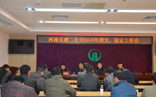 为全面落实公司清欠稳定工作的总体部署,深入开展2014年度清欠工作,确保春节期间的稳定,1月12日,公司召开了2014年清欠、稳定工作大会,部署年底清欠和稳定工作。公司党委书记、工会主席朱明友、副总经理吴万仁、副总经理吴建功、各二级机构负责人以及各项目经理参加了此次会议,会议由审计部部长、清欠办主任曹振波主持。