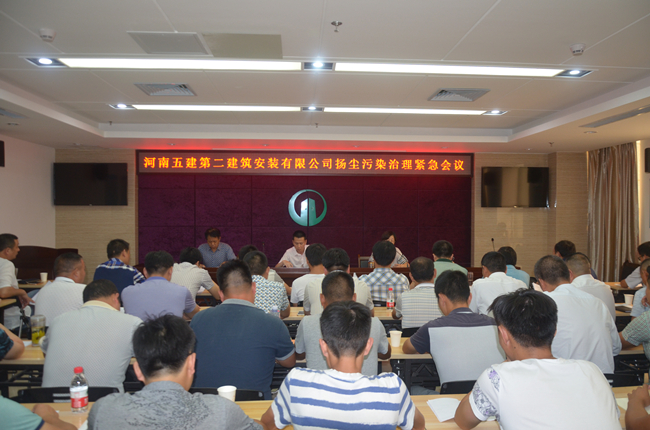 7月14日下午,公司在大会议室召开扬尘污染治理紧急会议,各项目部及各子、分公司负责人、安全员共计80余人参加。会议由工程部部长吴善艳主持。