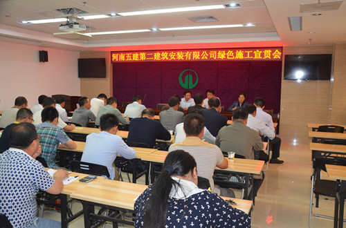 2015年5月26日下午15时,河南五建第二建筑安装有限公司绿色施工宣贯会正式开始,本次会议由各项目部项目经理、技术负责人以及公司工程部全体人员共计30余人参加。