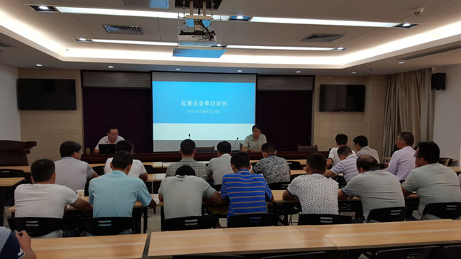 会议首先由公司工程部材设科科长蔡旺军讲述2015年8月16日至2015年8月27日全国范围内发生的塔吊安全事故,并针对每一例事故都进行了详细的分析和讲解,提醒大家做好事故的预防措施。