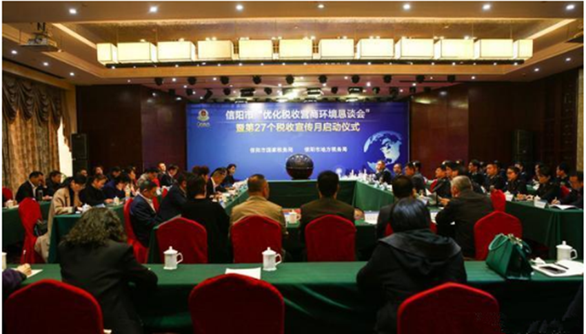 近日,为扎实推进第27个全国税收宣传月活动,进一步优化税收营商环境,信阳市国、地税局联合在中乐百花酒店举办了信阳市“优化营商环境恳谈会”暨第27个税收宣传月启动仪式,拉开了信阳市第27个税收宣传月的序幕。