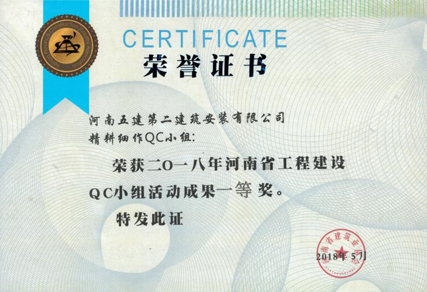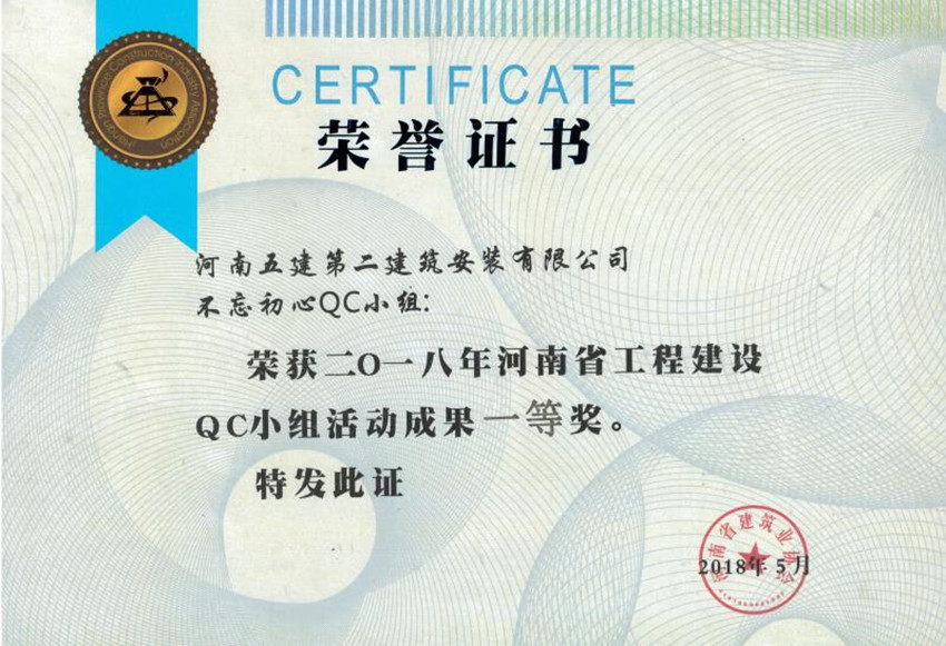 近日,河南省建筑业协会2018年工程建设优秀QC小组活动成果交流会在三门峡市召开,在此次的发布活动中,公司再创佳绩,推荐5个QC成果,其中3个获得了省级一等奖、2个获得了省级二等奖。