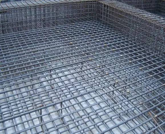7、 双层钢筋网片中间应设置梯子筋,以固定钢筋间距。