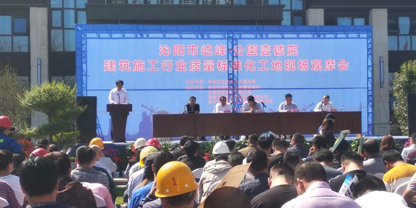9月 29日,沁阳市“建设工程质量管理标准化”现场会在我公司承建的“屹峰·公园一号院”项目召开,沁阳市质监站全体人员及沁阳市所有在建项目建设、施工、监理单位相关负责人参加了此次观摩会,沁阳市住建局局长李云森、副局长史和平、公司副总经理吴建功等出席会议,会议由沁阳市质监站站长张伟主持。
