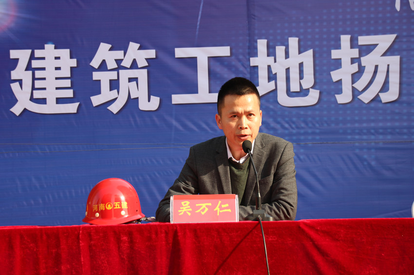 3月13日上午,信阳市中心城区建筑工地扬尘管控整改工作观摩会在我公司泰阳辰项目施工现场召开。市攻坚办指挥部办公室副主任张亚斌、市控尘专班巡查组组长王法举、高新区控尘专班主任陈伟、市城管局渣土办主任张传军、市住建局建管科科长邹存亮、公司董事长、总经理吴万仁等领导出席会议,市环境污染防治攻坚办、市城市管理局及浉河区、羊山新区、高新区污染防治攻坚办负责同志以及各施工企业代表参加了观摩会。