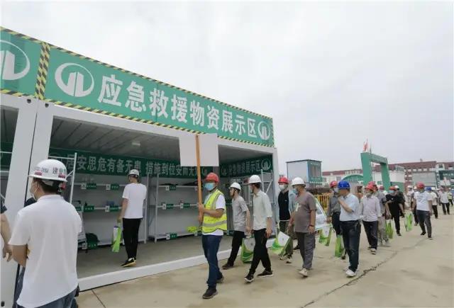 启动仪式后,与会人员深入中梁•珑熙府项目现场进行观摩交流,就智慧工地、施工高穿插、匠心品质力、安全文明、绿色施工等方面进行交流学习。中梁•珑熙府项目施工现场共设置智慧工地展区,依托BIM5D+决策系统实现塔吊在线可视化监控检测、智慧安全帽实时定位考勤等功能,应急救援物资展区、现场安全体验展区、安全文明过程管控展板、双重预防体系过程管控展板、施工现场安全文明标准化展区、施工现场质量标准化展区、工艺样板展区等八大展区,在安全文明施工、严格管理上的杰出表现给观摩人员留下了深刻印象。